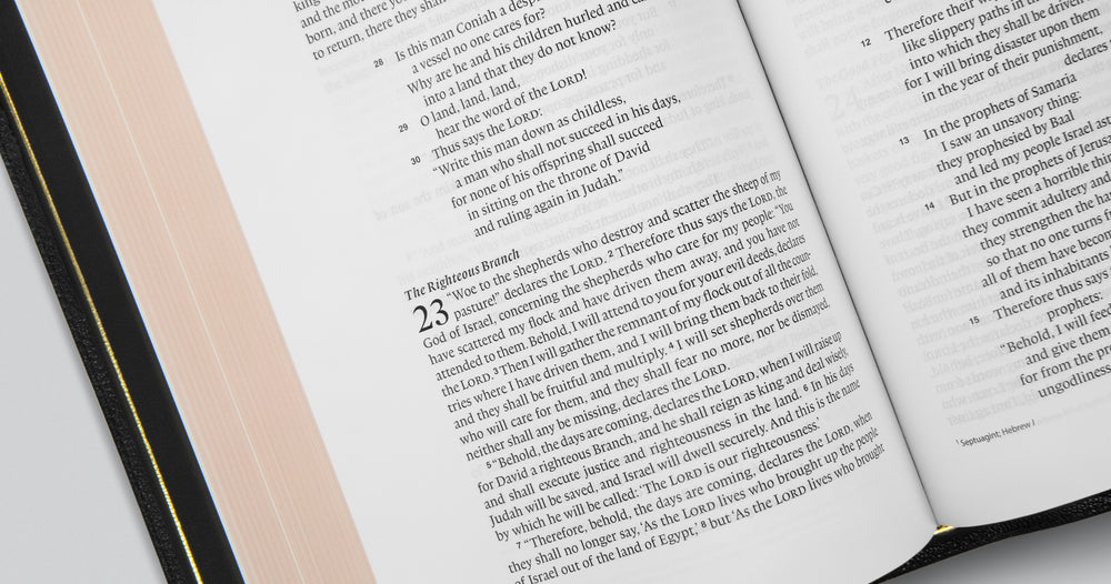 - Enlarged and bolded verse numbers surrounded by extra space to easily locate verses on the page
