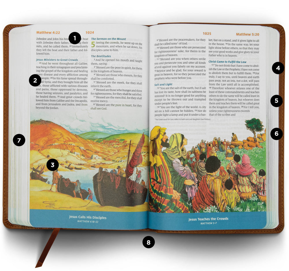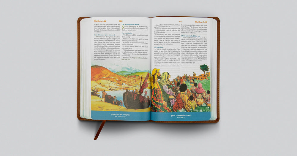 The ESV Children's Bible is designed to help children ages 5-10 see Bible stories come to life. Included with the complete ESV Bible text are more than 200 vibrant, full-color illustrations of Bible events and characters. Additional content includes a dictionary, Old and New Testament timelines, child-friendly maps, and help in directing children to key Scriptures on various topics. The ESV Children's Bible is a colorful Bible that kids will love!
