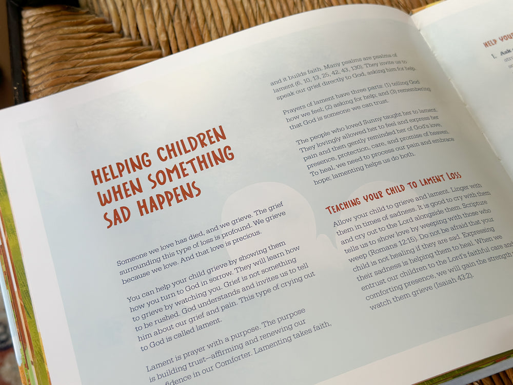 Darby A. Strickland uses the story of Sunny to help parents and caregivers walk with children through the complexities of grief and the questions that come with a loss. A special section at the end of the book gives parents tips for helping their children express their sorrow to God and offers ideas for remembering a loved one.