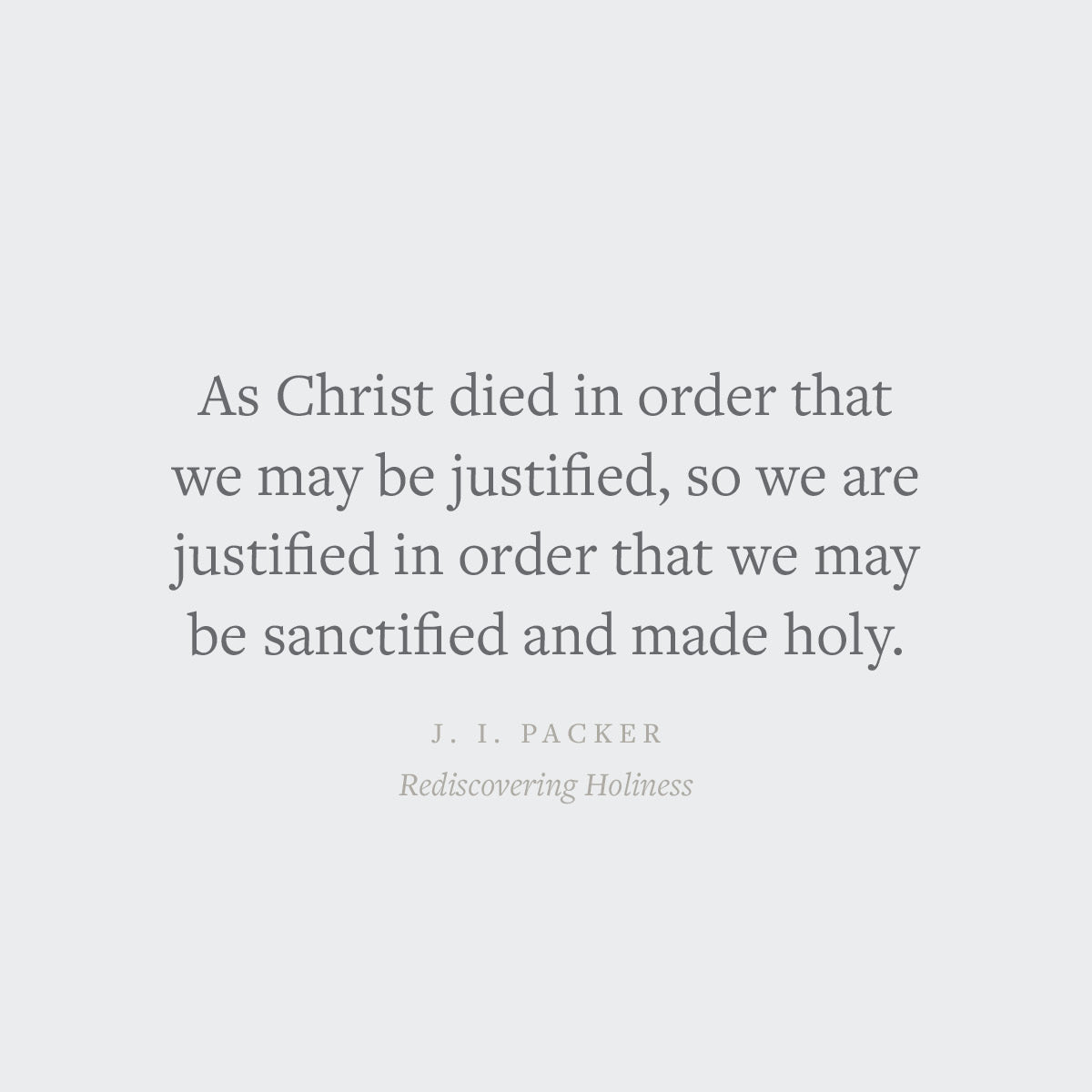 "As Christ died in order that we may be justified, so we are justified in order that we may be sanctified and made holy." --J. I. Packer