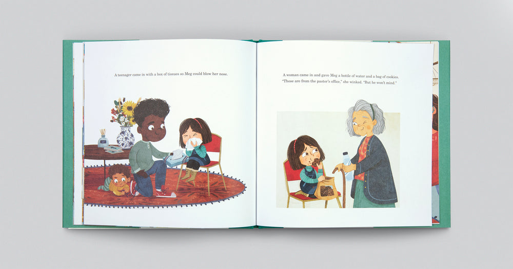 In this picture book, Meg's parents accidentally leave her at church after the morning service, which makes her feel scared. But Meg is not alone. Various people in the church stay with her until her dad returns. These church friends care for her by giving her things like tissues, cookies, and storybooks, and she learns how to be a church friend to others. With easy-to-understand language and colorful illustrations, this children's book highlights Jesus's command to "love one another," showing kids ages 3-7 that God has provided the local church to be their loving community. A TGC Kids book.