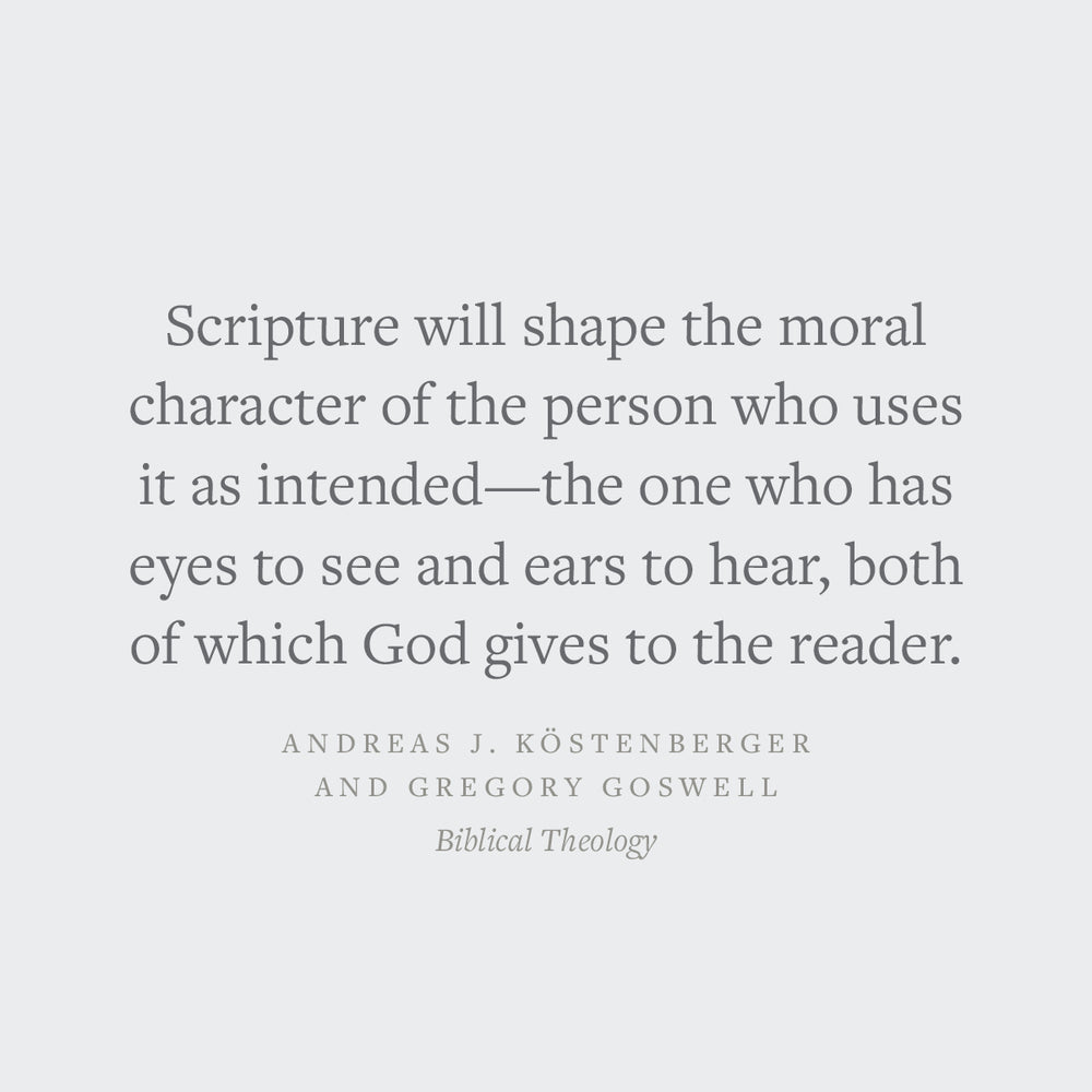 Biblical Theology is arranged book by book from the Old Testament (using the Hebrew order) through the New Testament. For each text, Kostenberger and Goswell analyze key biblical-theological themes, discussing the book's place in the overall storyline of Scripture. Next, they focus on the ethical component, showing how God seeks to transform the lives of his people through the inspired text. Following this technique, readers will better understand the theology of each book and its author.