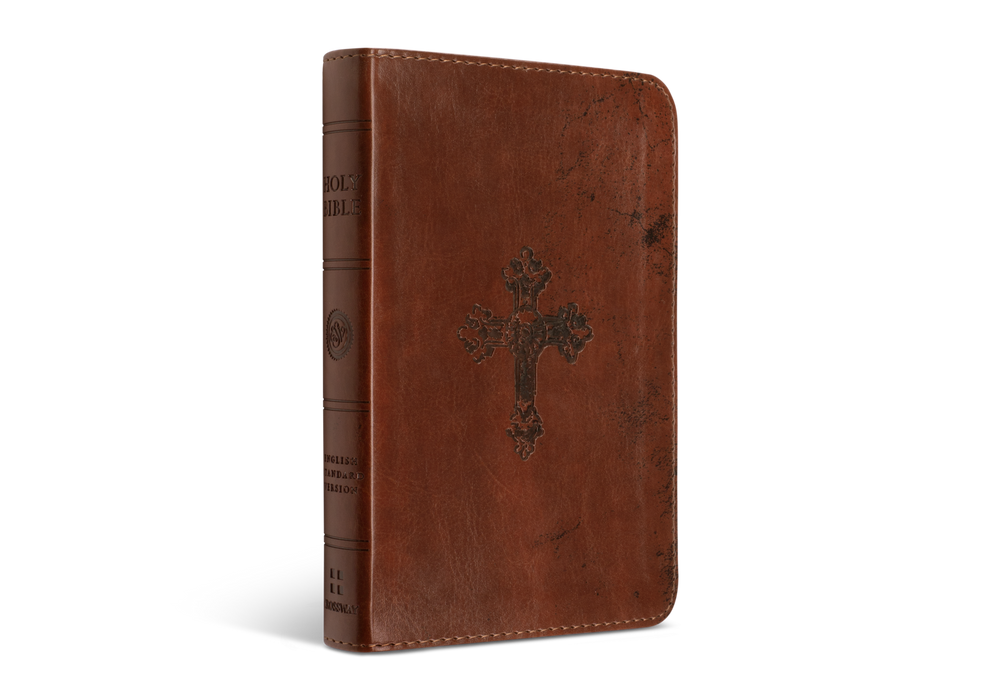 ESV Compact Bible (TruTone, Walnut, Weathered Cross Design)