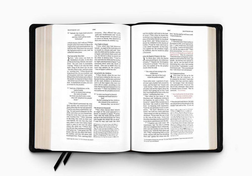 The ESV Wide Margin Reference Bible is perfect for those who interact closely with the Bible text. It features generous, one-inch margins on either side of the text, providing plenty of room for personal note-taking. Other features include a concordance, full-color maps, and cross-references located in the corner of each page. This edition is ideal for all who want to record notes, thoughts, or prayers in their Bible.
